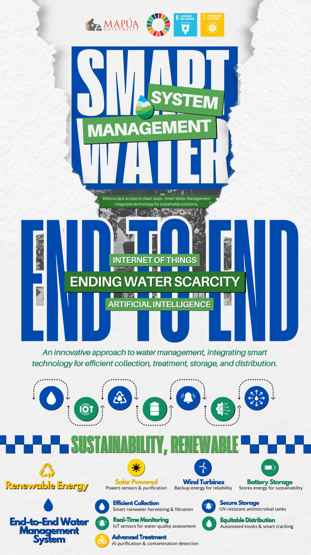 This concept paper explores how Computer Engineering can contribute to Sustainable Development Goal 6 (Clean Water and Sanitation) by developing innovative water management solutions. It presents a structured approach to identifying global water challenges and designing a technology-driven system for efficient water conservation and distribution.The paper outlines the technical feasibility, potential impact, and challenges of the proposed solution, incorporating smart monitoring systems, AI-driven analytics, and IoT integration to optimize water usage. Through this project, I gained valuable insights into engineering applications in sustainability, problem-solving methodologies, and the importance of aligning technology with real-world needs.This work showcases my ability to research, design, and propose solutions to global challenges, emphasizing the role of Computer Engineering in sustainable development.